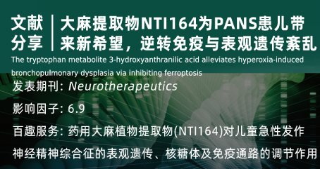 Neurotherapeutics(IF=6.9)|悉尼大学研究团队重磅突破!大麻提取物NTI164为PANS患儿带来新希望,逆转免疫与表观遗传紊乱