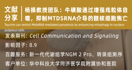 CCS(IF=8.9)|华中科技大学杨操教授团队:牛磺酸通过增强线粒体自噬,抑制mtdsRNA介导的髓核细胞焦亡