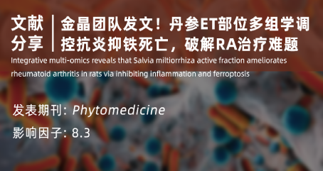 IF=8.3!中山大学金晶教授研究团队发文!丹参ET部位多组学调控抗炎抑铁死亡,破解RA治疗难题中山大学金晶教授研究团队发文!丹参ET部位多组学调控抗炎抑铁死亡,破解RA治疗难题2025-10-30 -