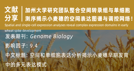 Genome Biology (IF=9.4)|加州大学研究团队整合空间转录组与单细胞测序揭示小麦穗的空间表达图谱与调控网络!加州大学研究团队整合空间转录组与单细胞测序揭示小麦穗的空间表达图谱与调控网络!2025-12-16 -