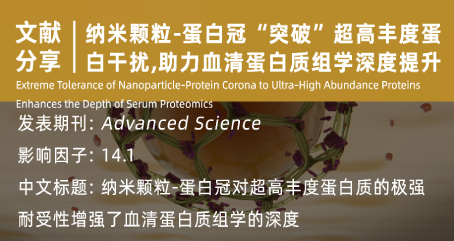 Adv. Sci. (IF=14.1)|纳米颗粒-蛋白冠“突破”超高丰度蛋白干扰,助力血清蛋白质组学深度提升纳米颗粒-蛋白冠“突破”超高丰度蛋白干扰,助力血清蛋白质组学深度提升2025-09-22