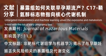 J. Hazard. Mater. (IF=11.3)|暴露组如何关联早孕期流产?C17-鞘氨醇标志物指向核心代谢机制